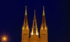 Holy Family Cathedral’s three towers are an iconic part of the Tulsa skyline.