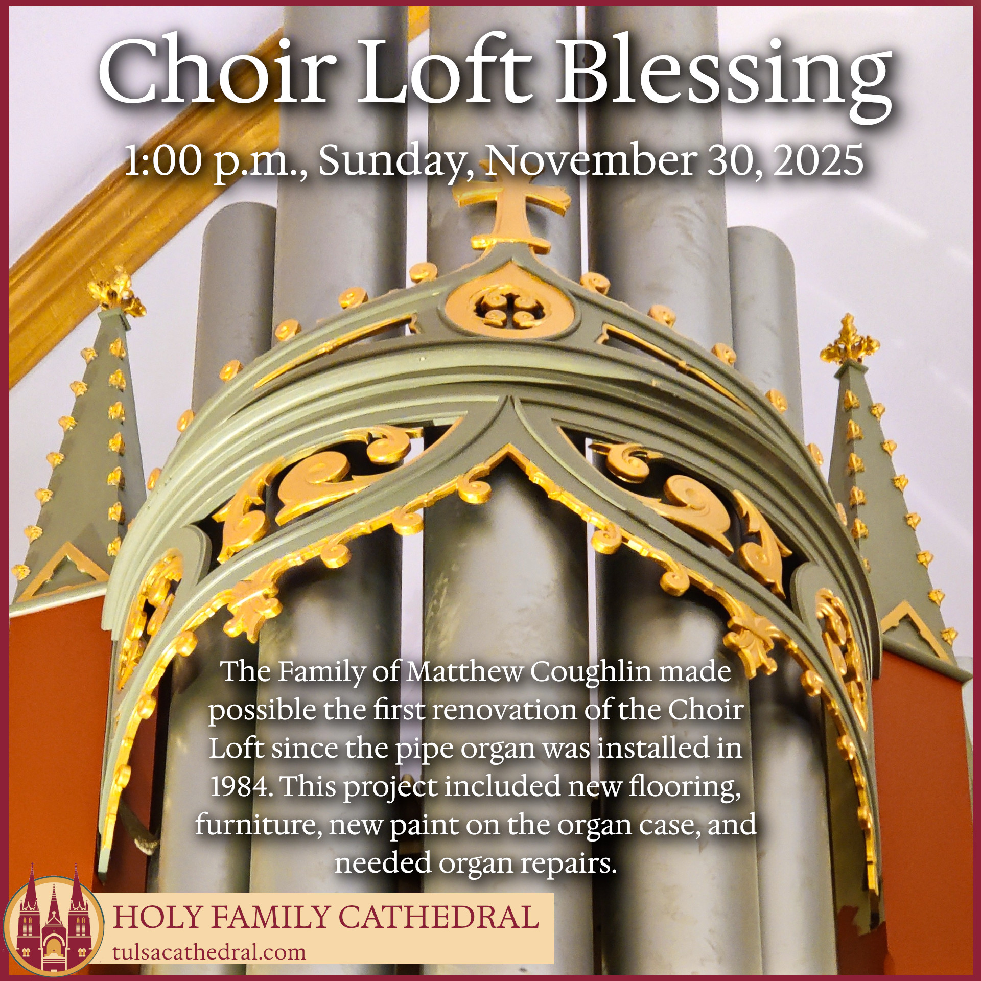 Cathedral Rector Father Brian O’Brien will bless the renovated choir loft and organ on Sunday, November 30, 2025 at about 1:00 p.m.