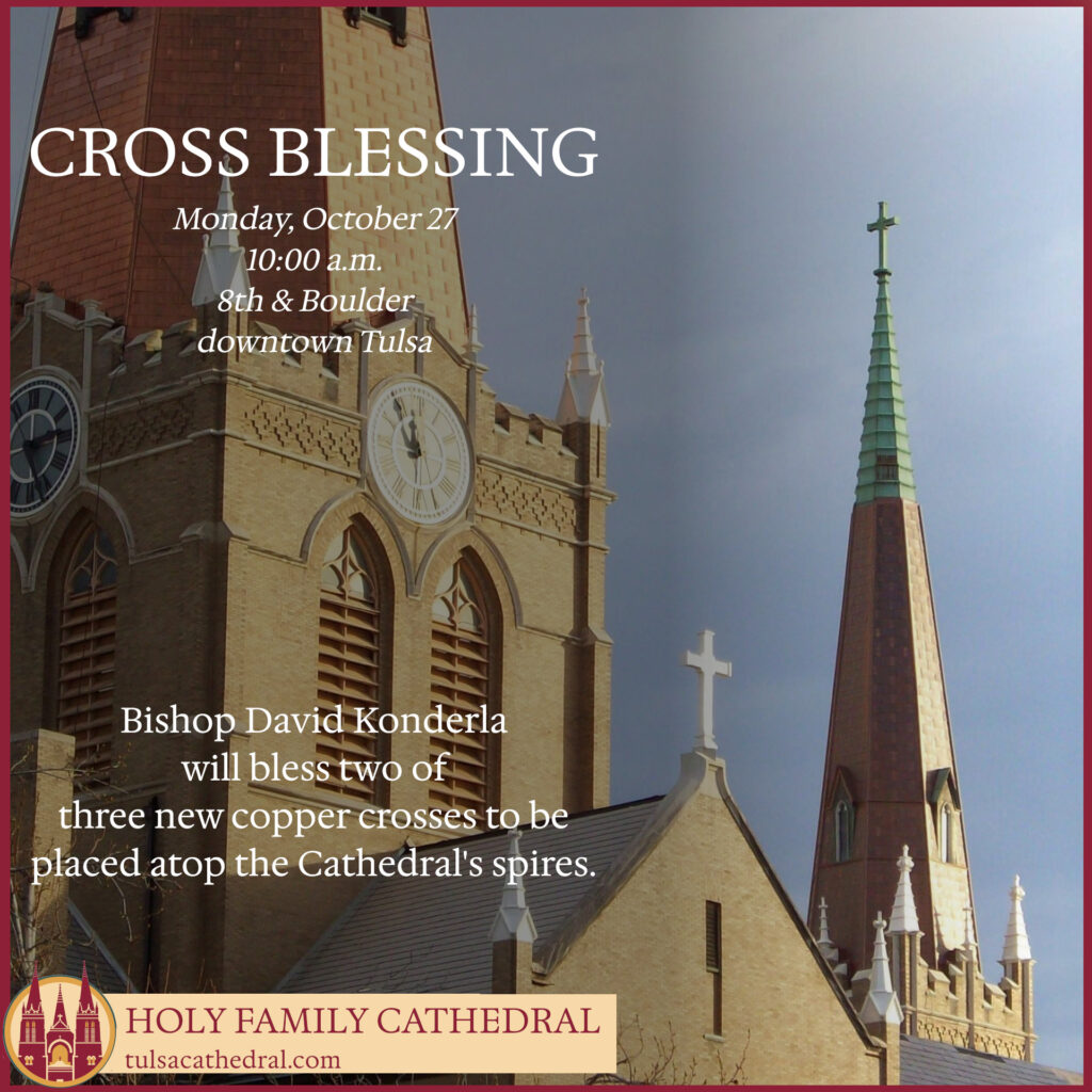 Be part of history as Bishop David Konderla blesses two copper crosses which will (later) be placed atop the Cathedral smaller towers.