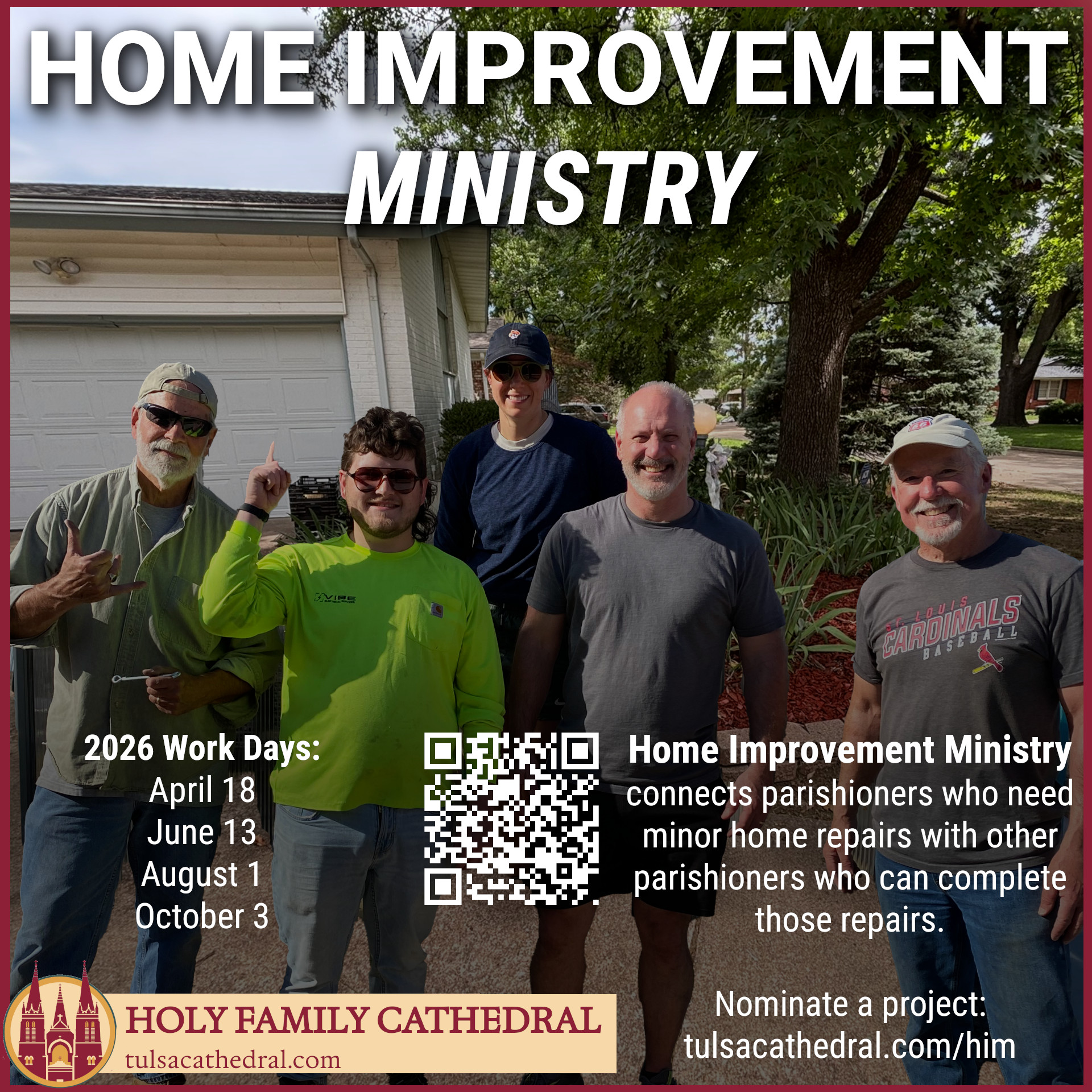 If you are a member of Holy Family Cathedral Parish, the Home Improvement Team wants to help you with your minor home repairs that you are incapable of completing yourself.
