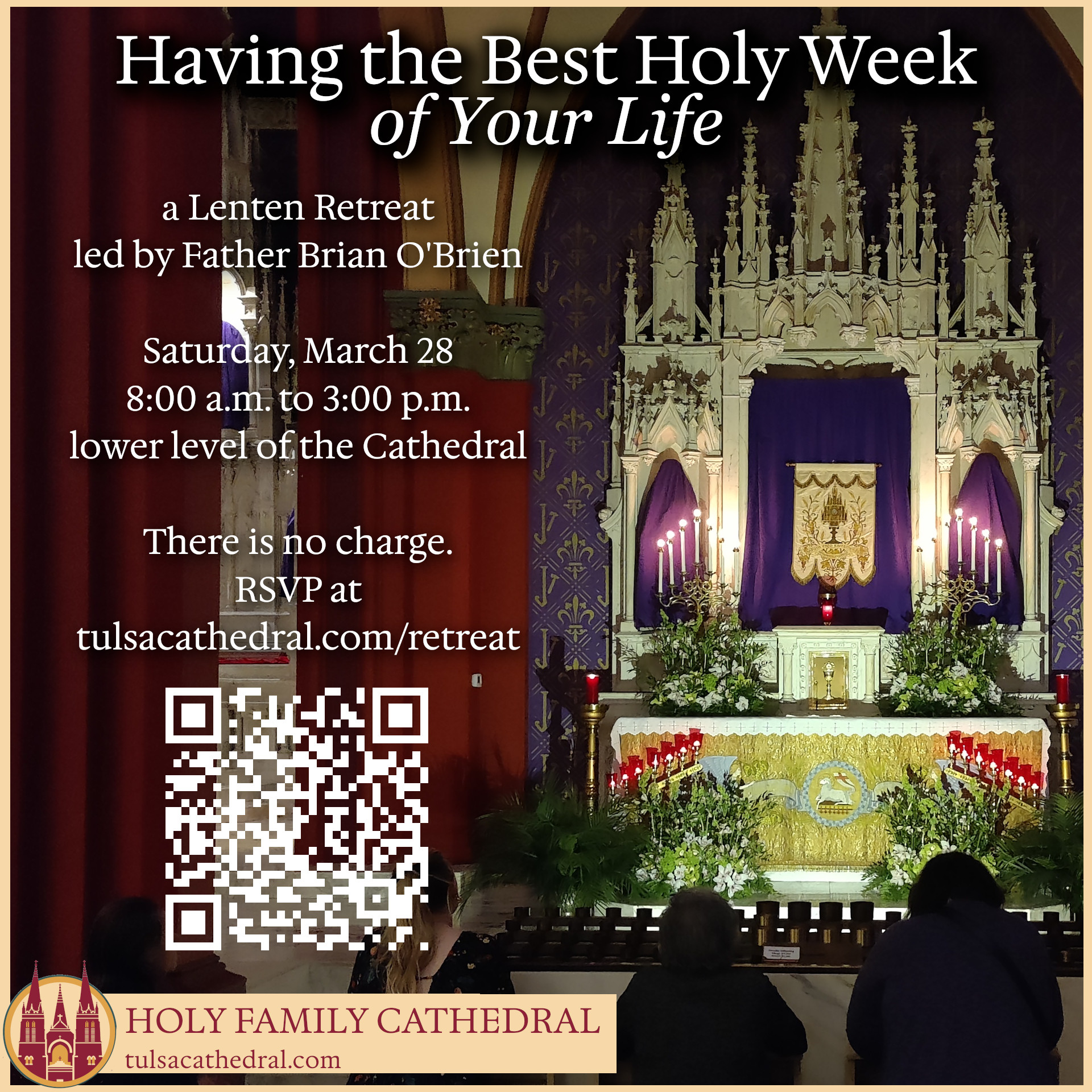 Lenten Retreat: “Having the Best Holy Week Of Your Life ” on Saturday, March 28, 8:00 to 3:00 p.m. led by Father O’Brien. The retreat is free of charge. Register here.